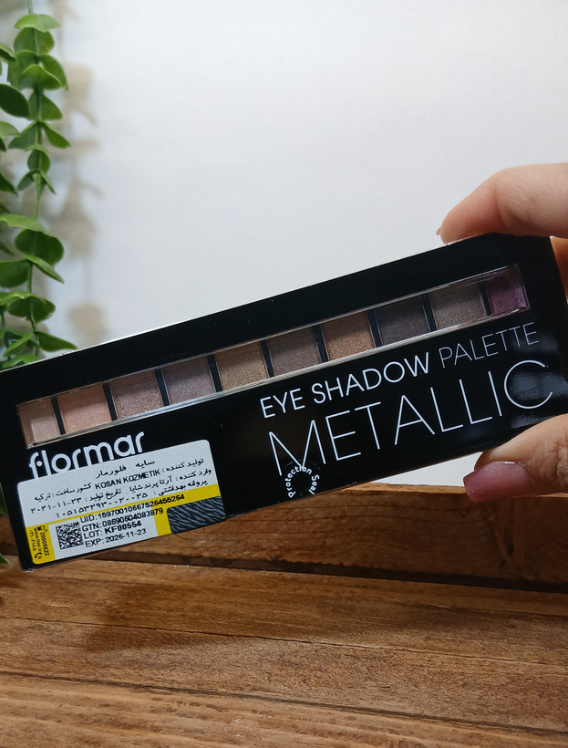 پالت سایه فلورمار متالیک شامل ۱۰ رنگ جذاب و براق است. سایه ها به دلیل بافت کرمی و نرم به راحتی قابل استفاده هستند. این ده رنگ جذاب را می توانید با هم ترکیب کنید و رنگ های خاص جدیدی تولید کنید. پالت سایه فلورمار متالیک دارای رنگ های گرم می باشند که برای فصل پاییز بسیار مناسب هستند. پیگمنت عالی دارد که به راحتی توسط برس سایه روی چشم بدون ریخته شدن می لغزد. در نتیجه اگر به دنبال یک پالت سایه چشم با رنگ های خیره کننده با ترکیبی از مروارید و روکش نیمه مات هستید پالت سایه چشم فلورمار مناسب شماست. همچنین ترکیب سایه های اکلیلی و براق با سایه های مات این پالت یکی از ترند های سال است.
